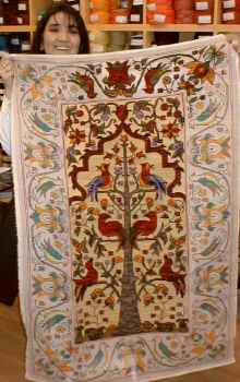 Mural Inca recién terminado de bordar en esterilla delgada de 100 x 85 cm. Realizado por Isabel Margarita Benavides. |