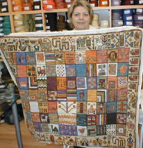 | Paola Messina sigue el riguroso pauteo del color que acordamos en nuestro taller. El diseño es Casa de Campo, esterilla delgada en 69 x 120 cm. | |||||||||||||||