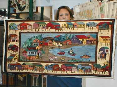 | Eliana Mateluna nos muestra esta Feria de Andacollo en esterilla delgada de 50 x 70. Ella lo enmarcó con un cristal, por lo que vemos ese reflejo. Está bordado en punto cruz y multipunto. | ||||||||||||