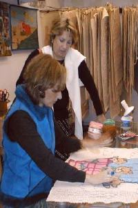 la foto vemos a Yvette de la Harpe, con su gran alfombra,