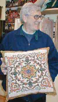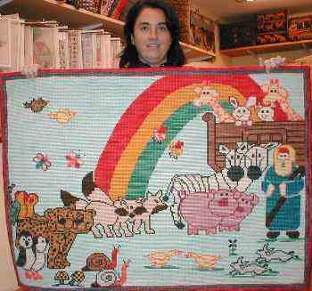 | Isabel Margarita Ciminelli bordó esta Base para Arbol de Navidad en esterilla delgada de 80 x 80 cm. que aquí nos muestra su hija. | ||||||||||||||||