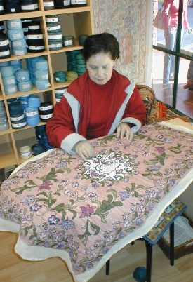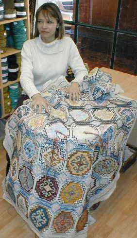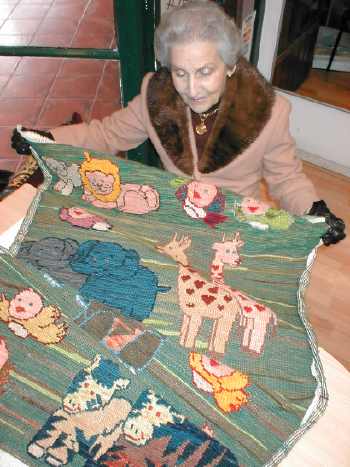 Sylvia Lazcano de Swett en proceso de convertir en alfombra este entretenido
