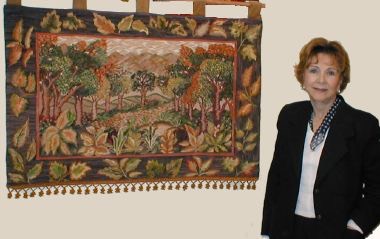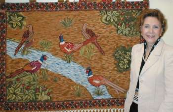Mural Faisanes en esterilla delgada de 125 x 93 cm. diseñado y bordado por Silvia Rodríguez, quien por supuesto es también quien nos lo muestra. |