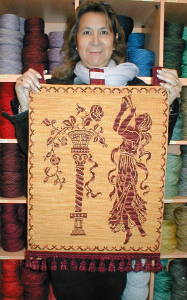 La alfombra de la foto derecha fue bordada por María Luisa García en