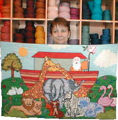 | Mural Arca de Noé de 60 x 90 cm. en esterilla delgada bordado por Soledad Alvarez. | ||||||||||||||||||||