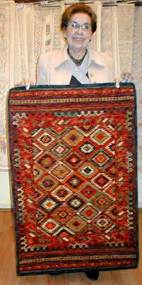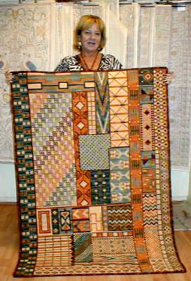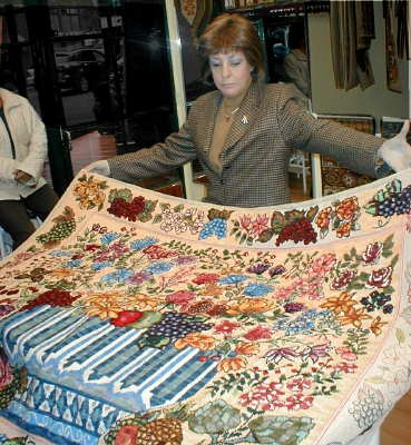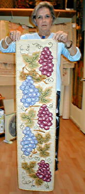 | Super Moto! de 40 x 30 cm. bordada por Margarita Acuña en esterilla delgada para su nieto terminada como cuadro, vidrio incluido. | Largo Camino de Uvas en esterilla delgada de 115 x 20 cm. bordado por Mariana de Grote. | Ana María Schultz nos vuelve a sorprender ahora con esta alfombra Patchwork en esterilla gruesa de 110 x 155 cm. | |||||||||||||||||||||||||||