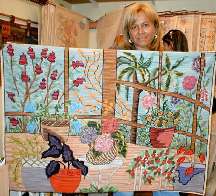 A la izquierda, Gran mural Frutero de 120 x 200 cm. bordado en esterilla delgada por Irene Silva. Podemos ver su comienzo en la página 30 de nuestra galería de trabajos. | ![]() |