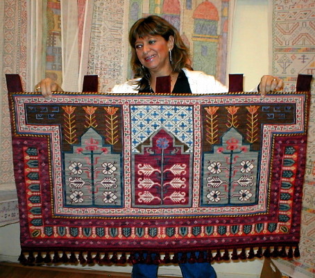 A la izquierda, alfombra Arca de Noé de 60 x 90 cm. en esterilla gruesa bordada por Yolanda León. | ![]() |