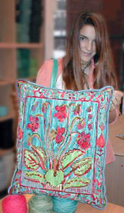 Cojín Floral de 50 x 40 cm. en esterilla delgada bordado por María Angélica Montes.
