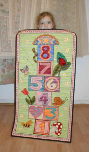 Alfombra infantil Luche bordada en esterilla delgada por Paola Simonetti, quien realizó su diseño.