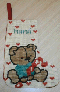Daniela Tajmuch (de 10 años) bordó esta Botita de Navidad en esterilla delgada. Parece que es para su mamá... |