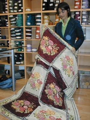| Oclidia Monsalve nos muestra su proceso de bordado de Patchwork de Rosas en esterilla delgada de 116 x 244 cm. | |||||||||||||||
