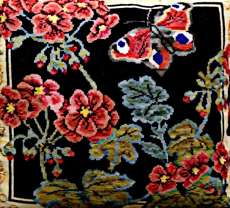 Alicia Meza la tenemos nuevamente, esta vez con el cojín Geranios de 50 x 50 cm. en esterilla delgada.![]()