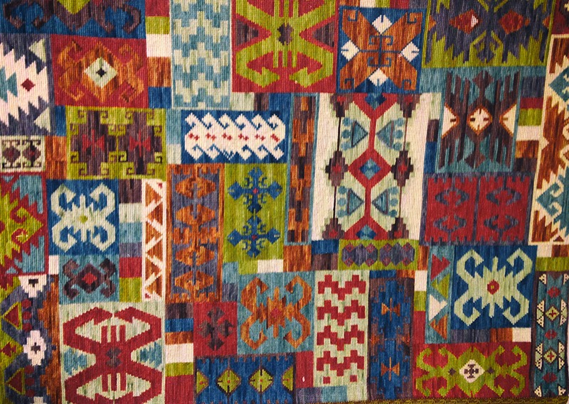 Mural Kilin Patchwork de 70 x 120 cm. en esterilla delgada bordado por Mónica Martorel con abrazaderas y flecos de seda.![]()