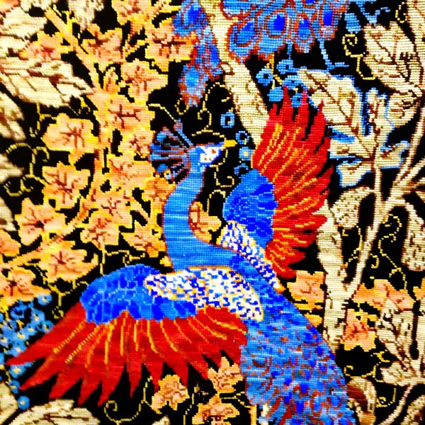 Soledad Godoy bordó este precioso mural Pavo Real en la Higuuera en esterilla delgada de 60 x 90 cm.![]()
