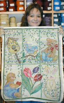 muestra su primera incursión en el arte de bordar: Ventanas, en esterilla