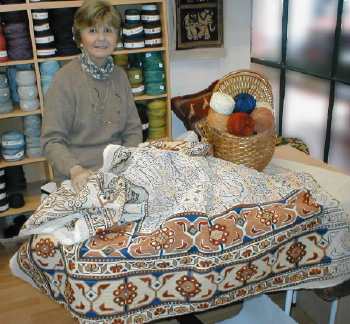 la foto vemos a Yvette de la Harpe, con su gran alfombra,