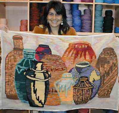 Jarrones de 80 x 120 cm. en esterilla delgada. Sólo falta el fondo para que este trabajo de Alejandra Pinto llegue a su fin. |