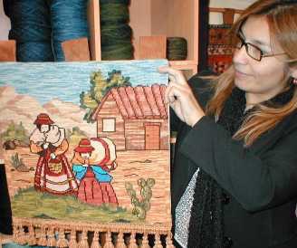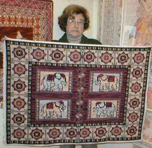 delgada de 70 x 100 cm. Se destaca de manera importante la greca que lo recorre por el rededor. Bordado por Elizabeth Endress. |