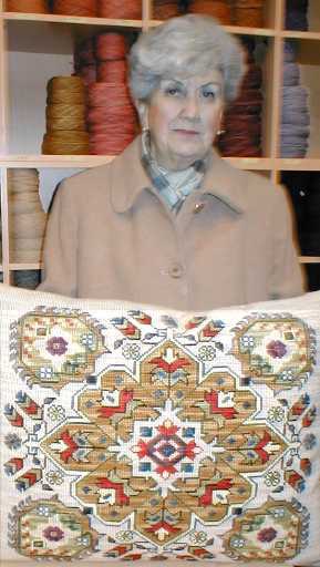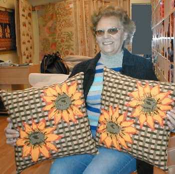 | Cojines de 45 x 45 cm de Girasoles bordados sobre un diseño cuadriculado en esterilla delgada por Rosa Sternfeld, que los comparte con nosotras. | ![]() |