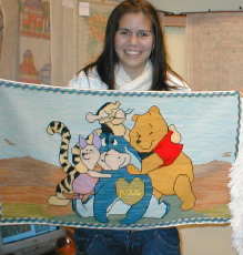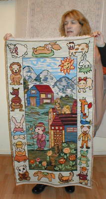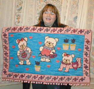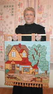 La alfombra de la foto derecha fue bordada por María Luisa García en