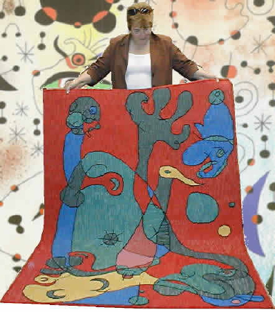 alfombra inspirada en un motivo de Joan Miro, en esterilla gruesa de 190