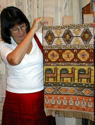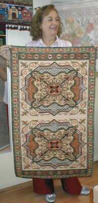 | A la derecha, alfombra con dos medallones bordada por Gisella Sauerteig en esterilla delgada de 100 x 60 cm. Perfecta la elección de los clásicos colores. | |||||||||||||||||||||