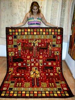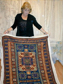 Isabel Pacheco ha bordado esta gran alfombra Caucásica en esterilla delgada de 120 x 200 cm.![]()
