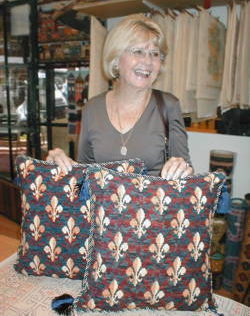 Cojines Flor de Lis en esterilla delgada de 45 x 45 cm. bordados por Yvette de la Harpe.