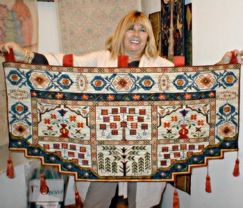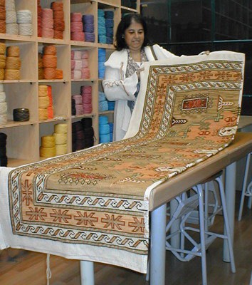 Dorita Concha ha bordado esta alfombra Moghan de 150 x 90 cm. en esterilla delgada.![]()
