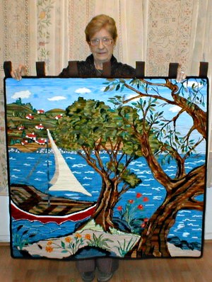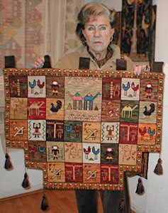 Ximena de Fuenzalida bordó este mural Casitas Taller en esterilla delgada de 60 x 80 cm. Nos lo muestra su hija María Verónica Fuenzalida.![]()