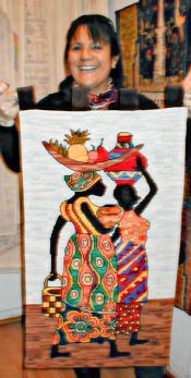 Este mural es una versión diferente de nuestro diseño Benin. En esterilla delgada de 80 x 45 cm. Bordado por Silvia Fuentealba.